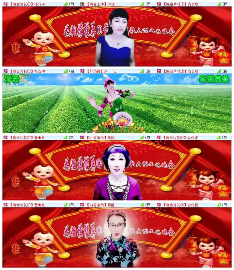 当晚八点,欢快悠扬的旋律中,晚会主持代表经典视听专区欢迎新老朋友的到来。告别了炎热的夏日,迎来了凉爽的初秋。让我们欢聚一堂,载歌载舞,舞动美丽的心情,演绎网络生活的精彩,祝愿花姐檬檬再回首房间越办越好,一路长虹。伴随着浮云带来的开场舞蹈《采茶舞曲》,开启了晚会序幕的精彩。; x5 L& I- `& H( K
