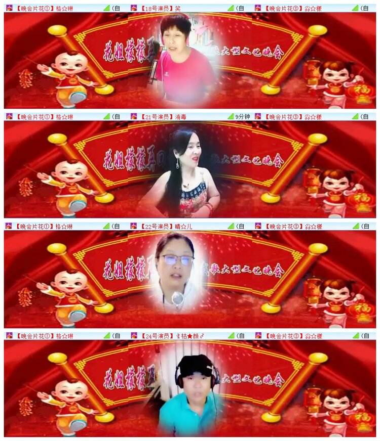 温馨相约,浪漫相聚,美丽心情在旋律中释放,美好的憧憬在歌声中飞扬。美凤演唱歌曲《马兰花》、小月芽带来葫芦丝独奏曲《云朵上的芜寨》、宇洁演唱歌曲《南屏晚钟》、静静演唱歌曲《山茶花》、晓月演唱歌曲《开开心心每一天》、小公主演唱歌曲《我的世界你来过》、动感蝴蝶演唱歌曲《歌声传永恒》、格林演唱歌曲《迷茫的爱》、湘演唱歌曲《红枣树》、舞动演唱歌曲《沂蒙颂》、诗酒传家演唱歌曲《李白的酒杜甫的愁》、淡定演唱歌曲《报花名》。精彩的演绎,倾情的演唱,晚会中高潮迭起,鲜花飞舞,掌声雷鸣。. ^( F$ P. P! L2 @5 R i+ E5 T; _