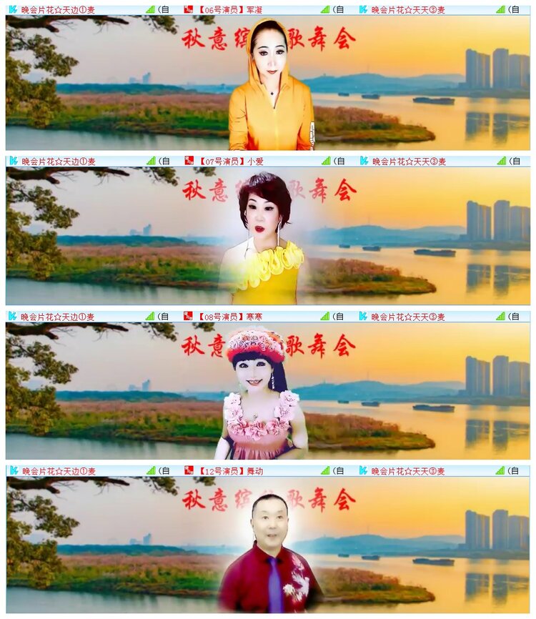 桂花飘香,诗意八月。欢聚一堂,尽情欢唱,演绎网络生活的精彩纷呈。兰子带来葫芦丝独奏曲《篝火狂欢夜》、美凤演唱歌曲《美丽家园》、湫水演唱歌曲《秋日私语》、新美朗诵美文《秋天的情思》、军凝演唱歌曲《枫叶之恋》、小爱演唱歌曲《如水年华》、寒寒演唱二人转选段《大姑娘美大姑娘浪》、芳草演唱歌曲《哥哥不来花不开》、漫步人生带来口琴演奏《又见山里红》等精彩演绎。