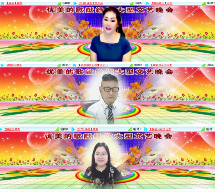 。 一曲歌唱出心中挚爱,一段舞跳出热血豪迈,一首诗谱写出果敢坚毅一路有你。 执着、梦想、追求、团结、我们共同燃心为香,巅峰领跃!梦想从不止步。霓彩演唱歌曲《逆风飞翔》、冰花演唱歌曲《小小新娘花》、雨燕巴乌演奏《今生陪你一起走》、祥和演唱歌曲《来生再续未了情》、军莉演唱歌曲《久别的人》、韵竹萨克斯演奏《沂蒙山小调》、远征演唱歌曲《夜色阑珊》、唯爱演唱歌曲《以后的以后》、紫微演唱歌曲《我的快乐就是想你》。% Z, j; z8 O' o& ]- v