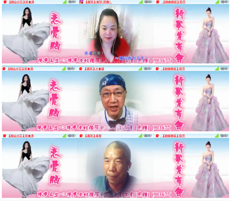 7 n. E {, g1 J9 L; O8 M 原创音乐是一缕阳光,温暖着我们的灵魂,原创音乐是一把钥匙,打开通往梦想的时光隧道,一首好听的歌,往往可以唱得人泪雨纷飞,唱得人如痴如醉,激情澎湃。接下来我们欣赏到:嘉宾凝听演唱《想你时我该说给谁听》《说不出口的伤痛》、嘉宾冷酷演唱《等你在雨季》《昨日过往》、嘉宾大猫演唱 《夜来香》《夜上海》、嘉宾荷花演唱《花妖》《月夜周庄》、嘉宾雯霞演唱《绿岛小夜曲》《风含情水含笑》、嘉宾真爱演唱 《泪蛋蛋掉在酒杯杯里》《泪蛋蛋掉在酒杯杯里》。为新歌发布会高歌助兴。