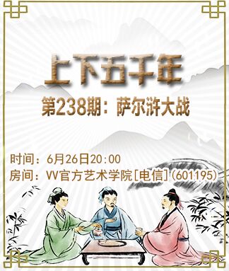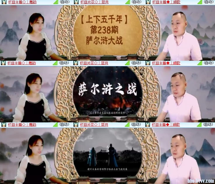 1 S; H2 M: Z+ I   2024年6月27日讯 趣谈历史故事,鉴以往而知未来,2024年6月26日晚八点整,VV官方艺术学院承办的经典栏目《上下五千年》,在VV官方活动专区VV官方艺术学院[电信](601195)房间开播,《上下五千年》栏目,黄金强档,现场直播;《上下五千年》第238期:萨尔浒大战,栏目主播舞韵、顺歌带您趣谈历史故事,鉴以往而知未来。# H, p" P3 Z- Z, R+ O$ k