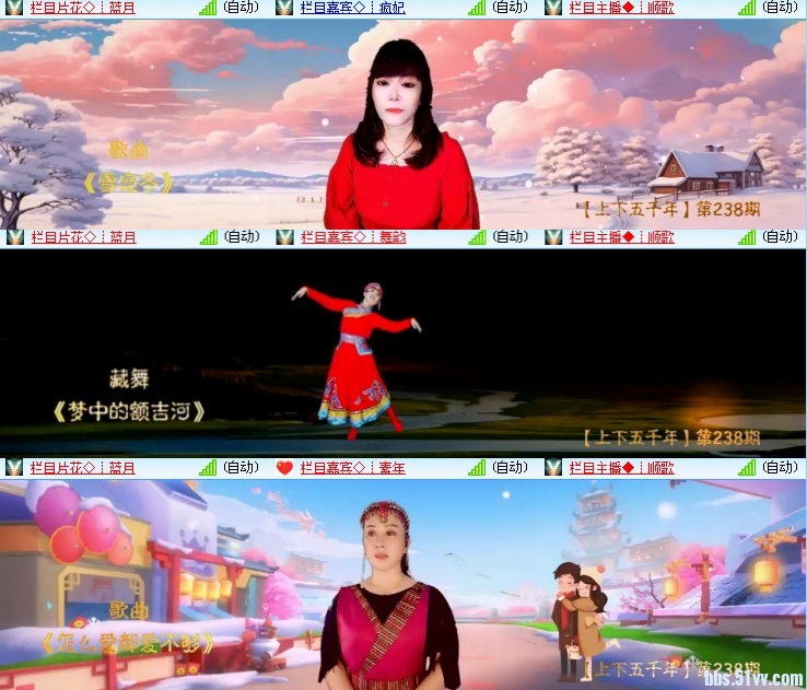 知晓古今轶事的同时,栏目嘉宾疯妃演唱歌曲《家乡的月亮》《雪恋冬》《杏花落》、栏目嘉宾舞韵表演形体舞《相遇那么美》藏舞《梦中的额吉河》古典舞《上春山》、栏目嘉宾素年演唱歌曲《我和草原有个约定》《怎么爱都爱不够》《挽梅香》。《上下五千年》栏目宗旨在于通过每一期的节目,以全新的视角、独特的语言、多样的形式,向您全面、立体的介绍历史故事,鉴以往而知未来。《上下五千年》与你相约VV官方艺术学院[电信]601195,不见不散!, H* ~9 o/ A* U" X& F7 l8 p& v5 ~