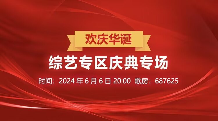 活动名称:欢庆华诞_综艺专区庆典专场 活动时间:2024年6月6日 20:00 活动地点:VV-综艺专区家族歌房-687625