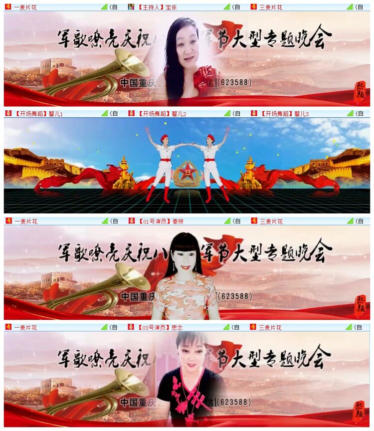 0 i: `& `" @1 f9 R5 _. \ 2024年8月9日讯 军歌嘹亮,庆祝八一。2024年8月9日晚八点,《军歌嘹亮》庆祝八一建军节大型专题晚会,在同城有约专区中国重庆艺术学院[电信] 623588房间里隆重举行。来自专区的才艺之星,以歌舞表演、器乐演奏等艺术形式,热烈庆祝中国人民解放军建军97周年,激情的军歌中弘扬时代军人的风采,盛世的节日欢歌中憧憬祖国美好的未来。晚会主持由优雅端庄的嘉宾宝仪担任。7 P/ i- {- x! B' ~3 R. F x0 m