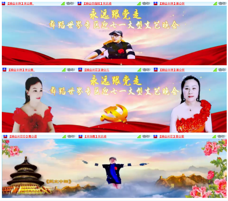 晚八点,烟花绽放中,主持米果、美好靓装登上视频舞台精彩开场,区领导东北虎精彩发言,欢迎朋友们的到来,感谢各位领导及各界朋友们的支持和帮助。感谢台前幕后的演职人员的辛苦付出,感谢官方团队的记者录像老师们。光阴荏苒,岁月如歌,伟大的中国共产党已过百年的光辉历程。百年沧桑路,记载着伟大的中国共产党带领我们创造的灿烂辉煌,在这举国欢庆的日子,我们怀着激动的心情,放歌抒心情,歌舞庆华诞,以青春之名致敬百年荣耀,为伟大的中国共产党献上最美的赞歌,祝福我们伟大的中国共产党万岁,祝愿我们伟大的祖国繁荣昌盛,国泰民安。晚会围绕《喜迎七一》《不忘初心》《共建美好》三个篇章展开,晚会在东北虎 表演的慢飘舞 《挺立中国》中拉开序幕。: g9 b% U _' n7 X2 @4 m2 r% i/ w