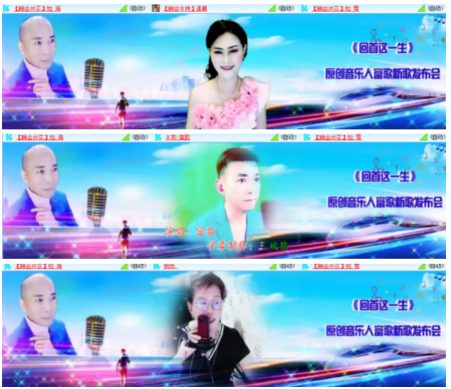 - R, P, T+ T3 V9 M9 q) @ 晚八点,烟花绽放中,主持人温馨靓装登上视频舞台,为晚会精彩开场,欢迎朋友们的到来,感谢各位领导及各界朋友们的支持和帮助,感恩VV,让远隔千山万水的我们相聚在一起。趟过人生的时光长廊,越过无数的岁月滩头,我们相遇在新歌发布会现场,宣传原创音乐作品,塑造原创音乐形象,拓展原创音乐之路。接下来主宾富歌为朋友们分享了新歌《回首这一生》的创作背景及创作灵感,并演唱了新歌。富歌来自辽宁大连。是一位冉冉升起的原创新秀。他富有磁性的嗓音吸引了大批的粉丝,作品很受广大聊友的喜爱并传唱,他的代表作有《我要去怀化》《乡愁》《梦回浔阳》《黄土情谣》《街口》《你的美丽让我难眠》《醉乡愁》《别江南》《摇一条小船游湖州》《流水带不走月亮》《彩云的故乡》《情窦初开》《冰凌花开的地方》《再唱沂蒙山》《画里畲家》《甘孜有个木格措》《故人叹》《灞桥春柳》《美丽的漓江河》等。1 F* n4 c; a3 k8 z+ D5 R