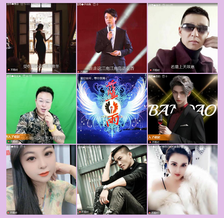 D# W$ ~ d0 H _( Q 激情唱响,魅力绽放,蓝雨主播大联欢,风景这边独好。活动晚会上,家族主播们依次上麦,带着感恩之情,展示自我风采:蓝雨·苏阳演唱《好春光》、蓝雨·千钧演唱《寂寞如夜》、蓝雨·荷花演唱《相信她关心她》、蓝雨·米雪做自己的女王演唱《左手指月》、蓝雨·子非鱼演唱《开心的马骝》、蓝雨·俊萍 点了 《花开四季只为等你》、蓝雨·小可爱演唱《护花使者》、蓝雨·小皇帝演唱《无悔之缘》、蓝雨·仙子演唱《堆积情感》、蓝雨·葱哥演唱《这一路》。美妙悠扬的歌声,如梦如幻的礼物,交相辉映,呈现出蓝雨家族欣欣向荣的繁荣景象。! f; B5 I, D' W6 c' ` ^% K% C6 a. r