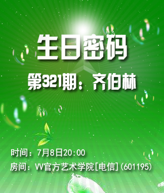 * Y/ f2 a, _" d- z8 D4 l$ {活动名称:《生日密码》第321期:齐伯林/ K2 }# V0 k1 l0 R5 f