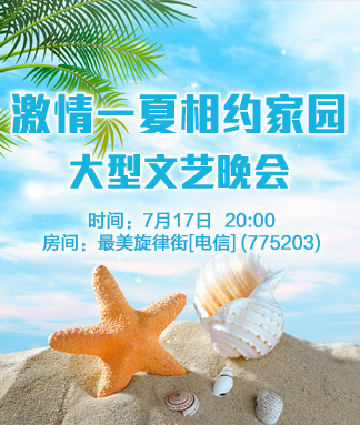 活动名称:激情一夏相约家园大型文艺晚会 活动时间:2024年7月17日 20:00 活动地点:玫瑰家园-红玫瑰区-最美旋律街[电信]-775203