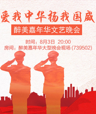 活动名称:醉美嘉年华《爱我中华扬我国威》文艺晚会 活动时间:2024年8月3日 20:00 活动地点:金色嘉年华-网络家园-醉美嘉年华大型晚会活动现场-739502 ( J- t" k( z- Y! L$ ^6 ^4 Y